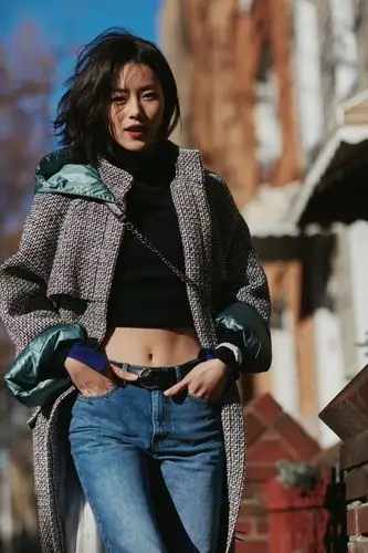 超模刘雯身穿chanel斜纹软呢大衣街拍