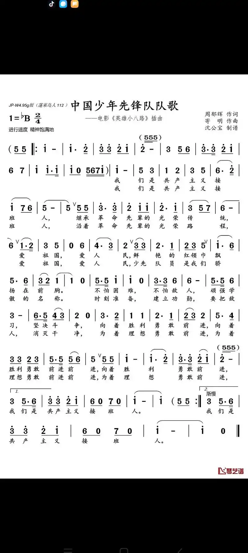 《中国少年先锋队队歌》歌词歌谱