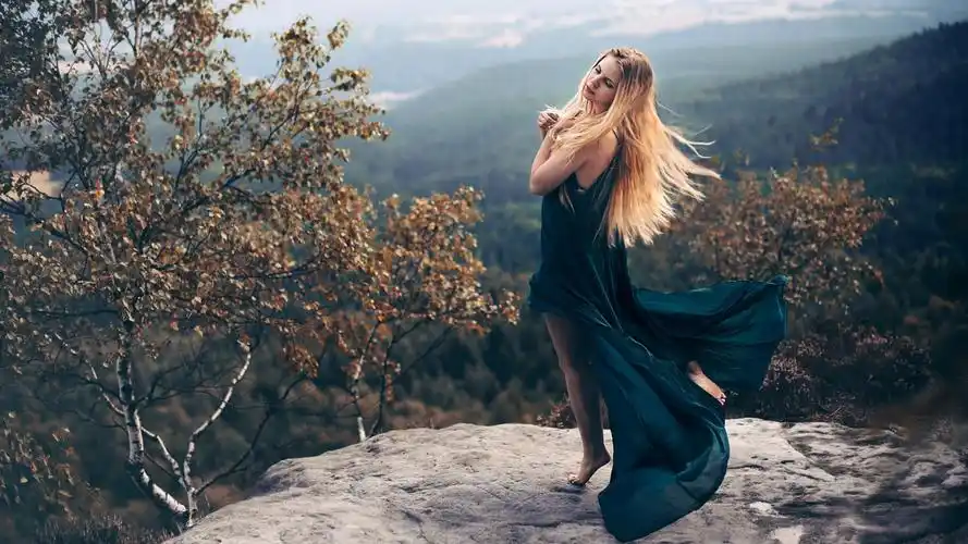 漂亮金发女孩长裙子礼服美女风景壁纸