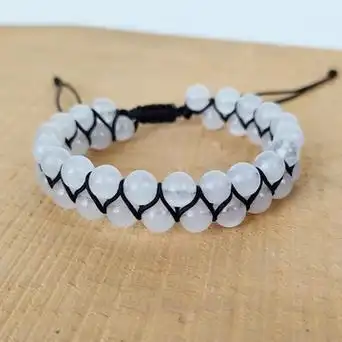 跨境热销汉白玉双排手链手工编织天然石双层串珠手饰可调节批发