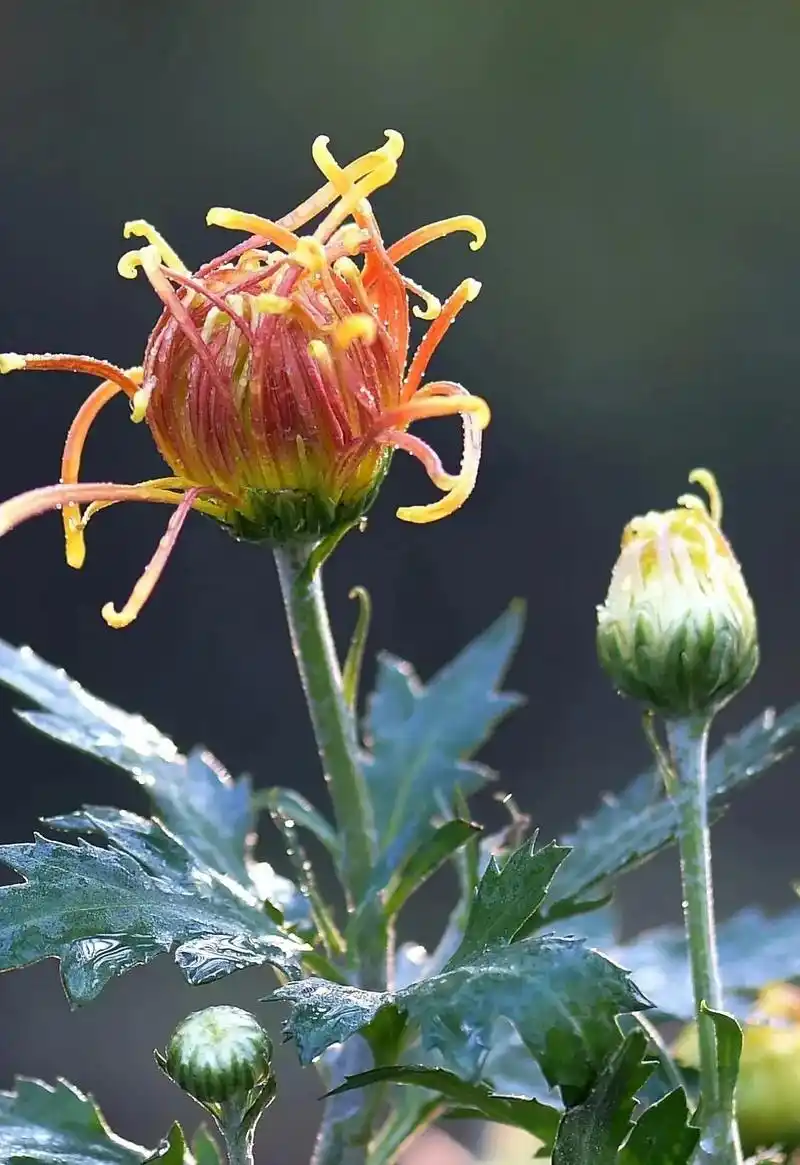 菊花.菊花含苞欲放,独自傲立于秋日的枝头,沐浴阳光,等待着风