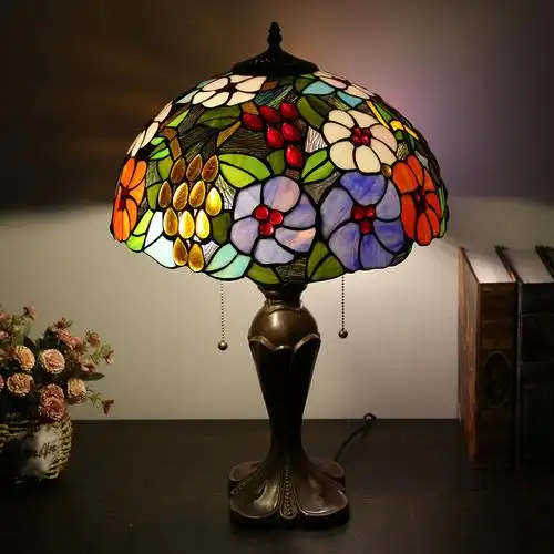 【hauty】12寸帝凡尼彩色玻璃装饰台灯欧式田园卧室床头灯 百合花