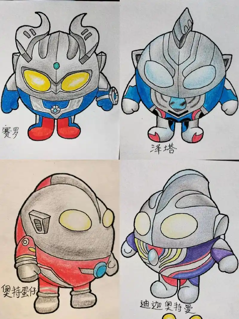 奥特曼四人组蛋仔.#画画 #一起学画画 #手绘 #奥特曼简笔 - 抖音