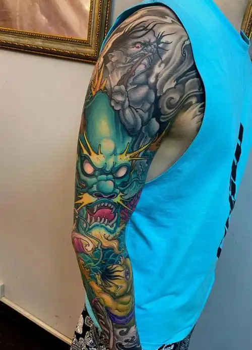 花臂过肩龙纹身图片_胸部手臂新传统纹身图案(3)_天津市纹身店-缘刺青