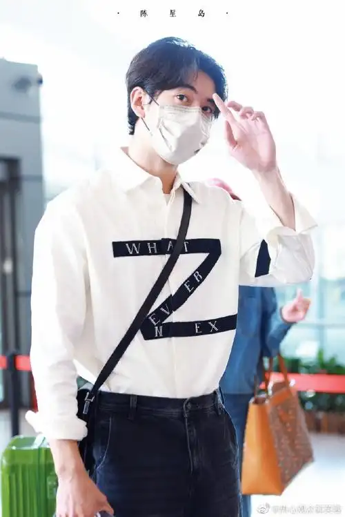 陈星旭最新机场照释出,拼接衬衫打造时装型男风格,暗夜中与花的合影真