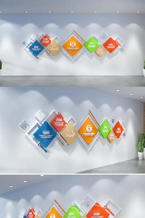 创意菱形英文国外企业文化墙设计图