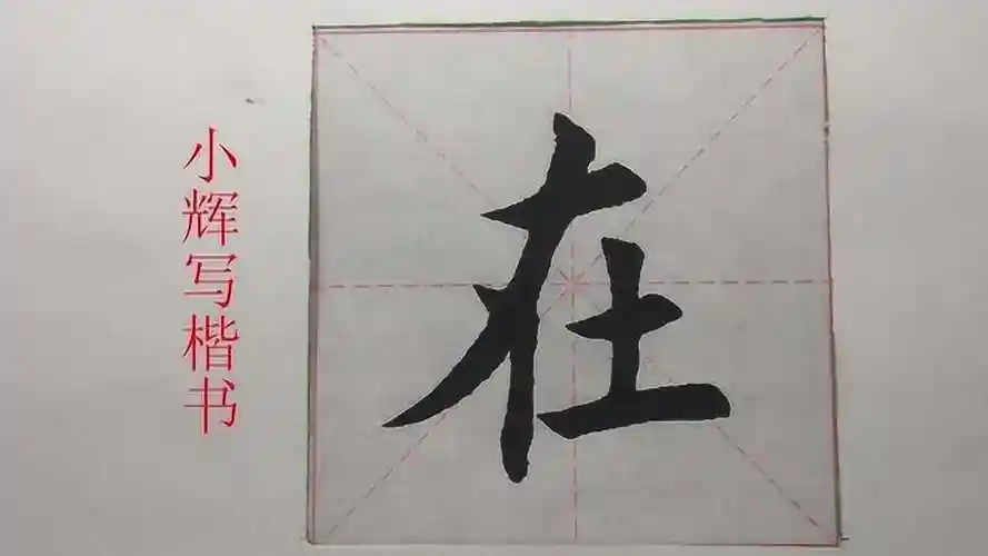 毛笔楷书在字示范重点是长撇的写法角度要写好