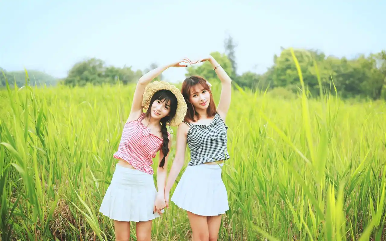 清纯小姐妹清新田园风高清壁纸