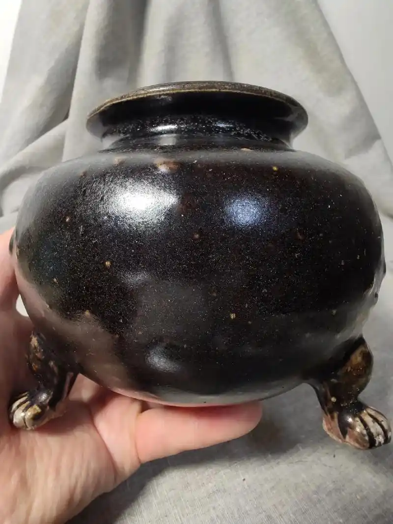 唐代邢窑黑釉三足吊脚炉,器型规整少见#器物之美 #邢窑 #让 - 抖音
