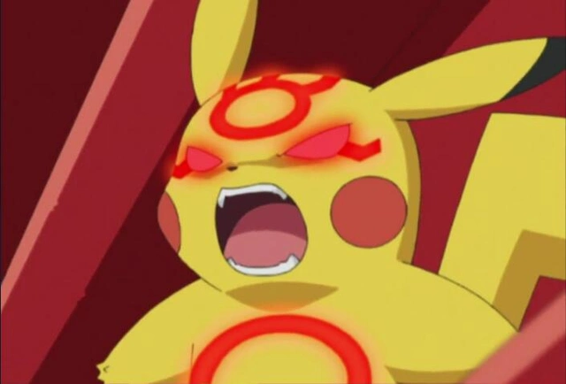 处于混乱失控的皮卡丘模样有点吓人啊