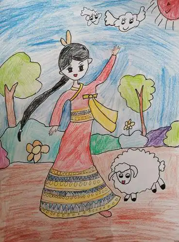 原创儿童画作品|民族舞蹈|大草原 不同光线拍出来的效果真的差别有点