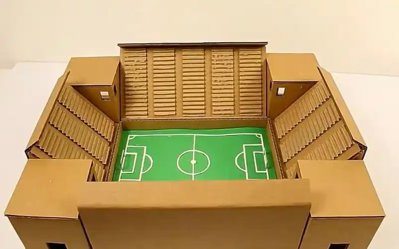手工制作漂亮的足球场模型,方法很简单,材料就是普通的纸板!