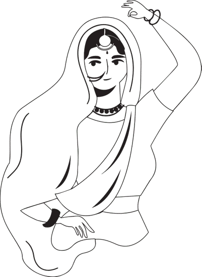 名称:在装饰品和鲜花包围的纱丽的印度女孩.