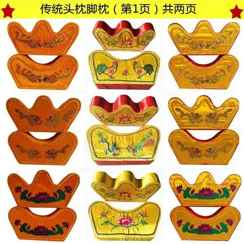 寿枕男女头枕脚枕传统硬寿枕丝绸大绣花死人枕头全套寿衣配件殡葬绣