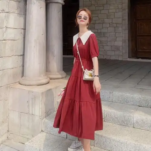 时尚春季百搭拜年服连衣裙女装坚果本命年红色过年服裙子2021新款
