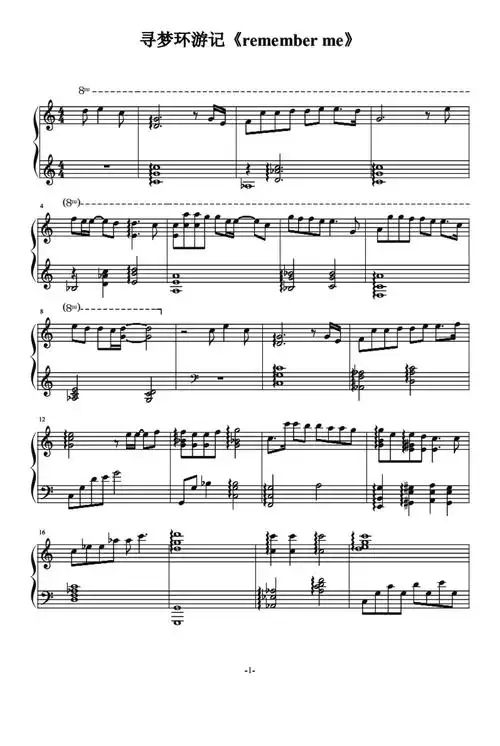 「钢琴谱」改编remember me 94 《寻梦环游记》该片的灵感源于
