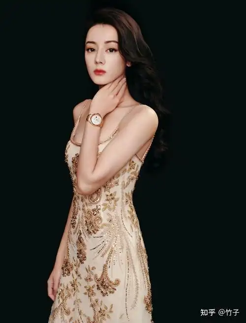 迪丽热巴最新美照,香槟色刺绣礼服裙星眸璀璨优雅至极,热巴好美