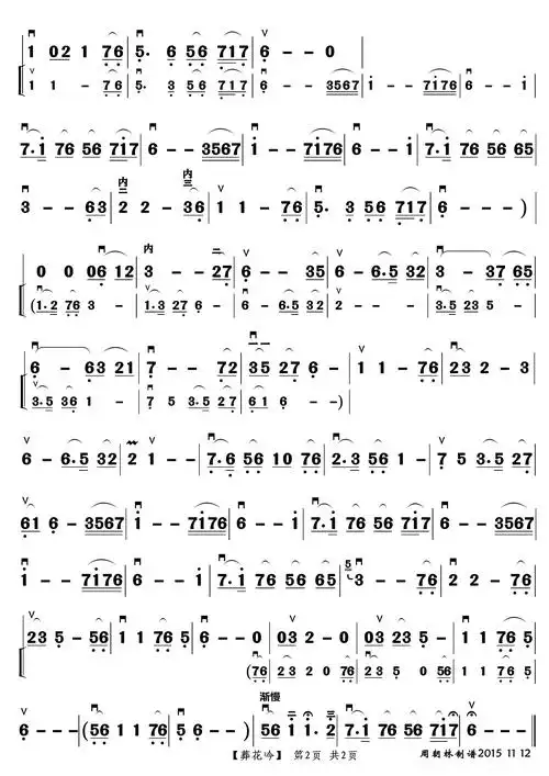 葬花吟(章祥兴制谱版)二胡简谱-明明简谱网