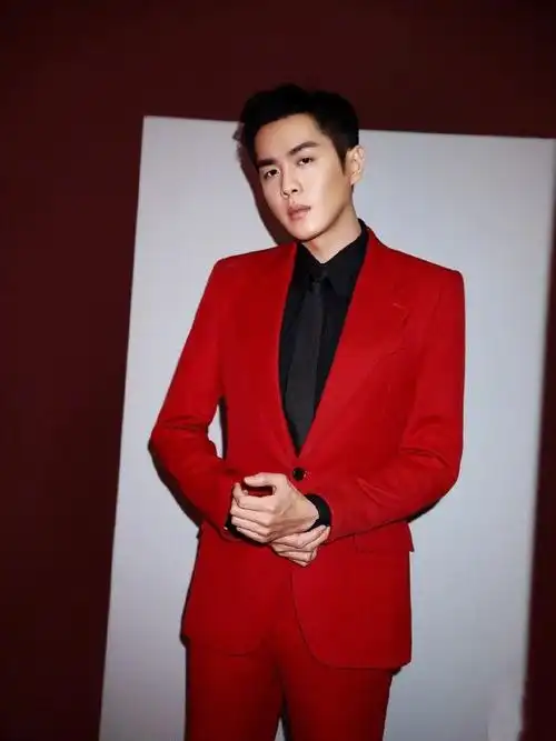 沈凌红色西服写真贺新春帅气喜庆迎新年