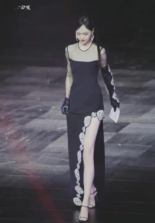 唐嫣好身材任性身穿黑色西装配高跟鞋下装失踪时尚又高级