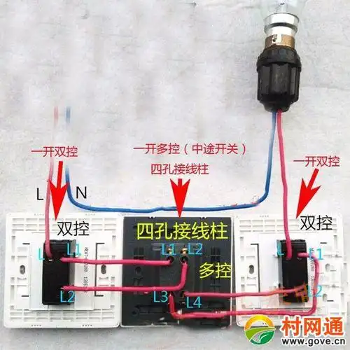 一边三开一边一开双控开关接线图