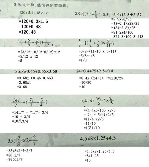 数学脱式计算