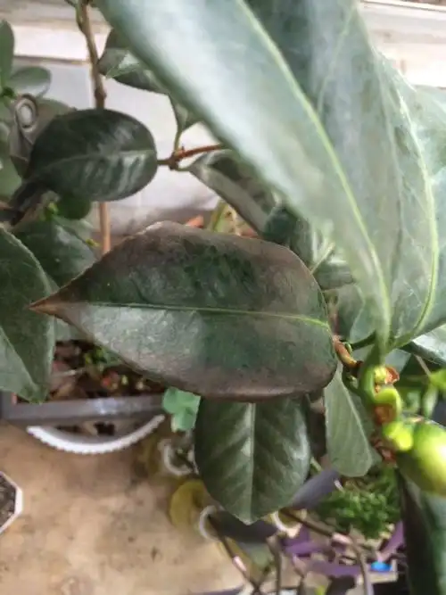 茶花叶片这样怎么回事,颜色变深干枯脱落.