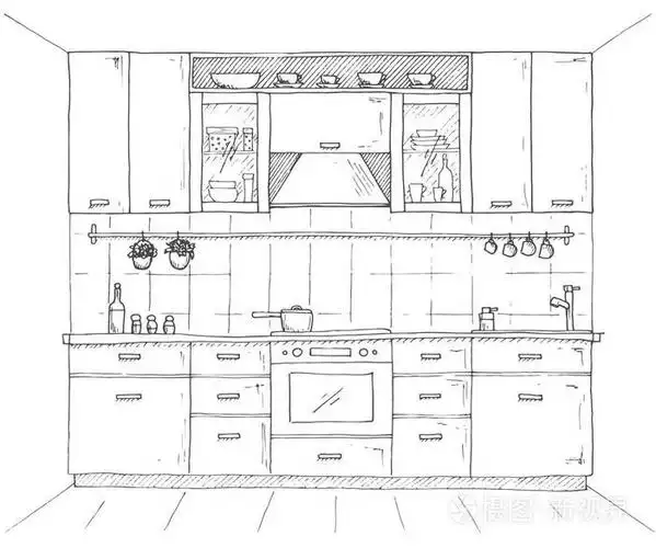 厨房家具素描手绘橱柜