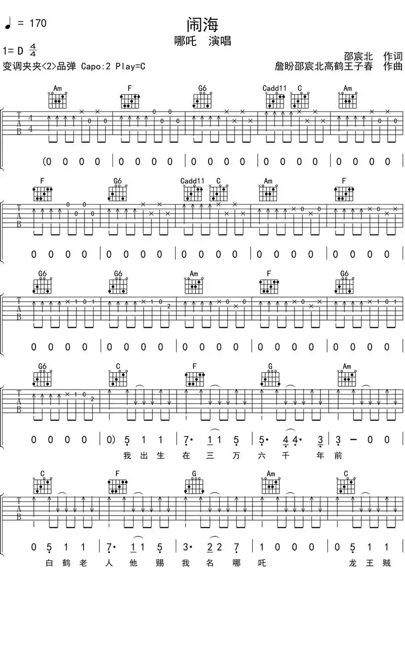 2013-09-02 来自: 弹琴吧 吉他谱试听 吉他谱 - 闹海 歌手:哪吒乐队