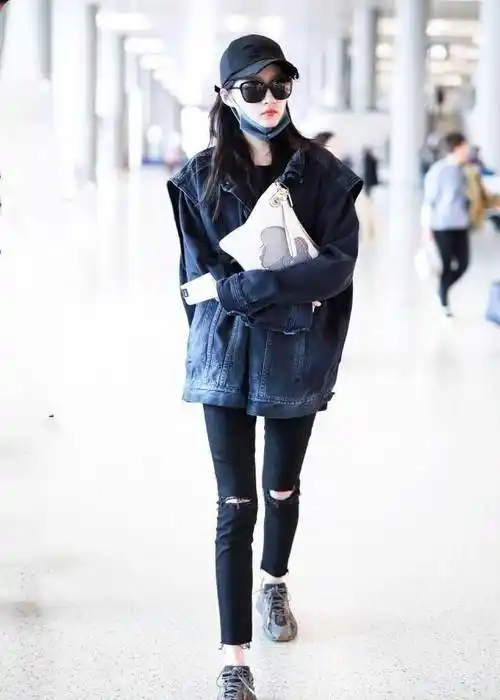 关晓彤最新机场照,牛仔背心牛仔裤运动休闲,22岁肤白红唇太惊艳