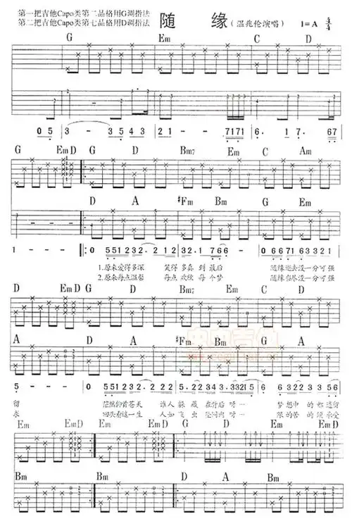 温兆伦《随缘》吉他谱_g调吉他弹唱谱_双吉他版第1张