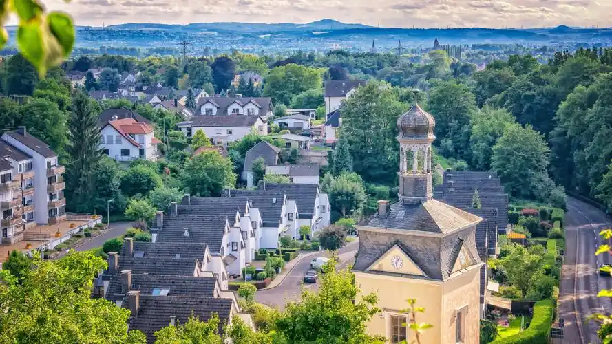 村庄房子树木道路云彩4k