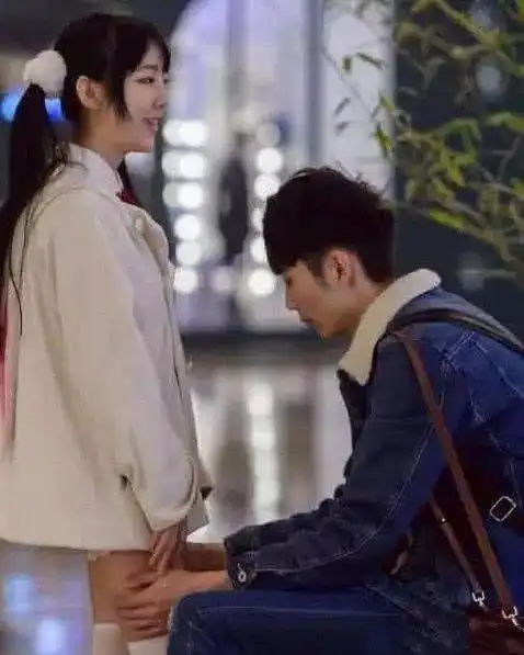 这一对情侣身高差距差不多有2,30厘米,女孩很开心.