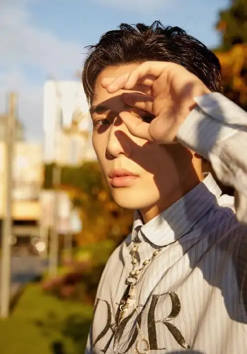 王安宇条纹衬衫秋色风氛围感帅气图片