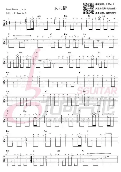 女儿情(吉他指弹谱/北尚吉他)吉他谱(图片谱,北尚吉他,指弹,吉他谱)