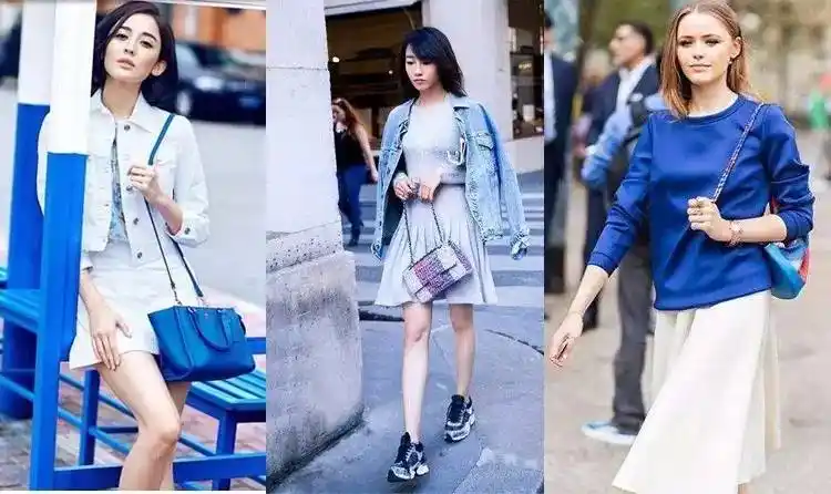 蓝色连衣裙配什么包包,蓝色裙子配什么颜色包包,蓝色连衣裙搭配图片