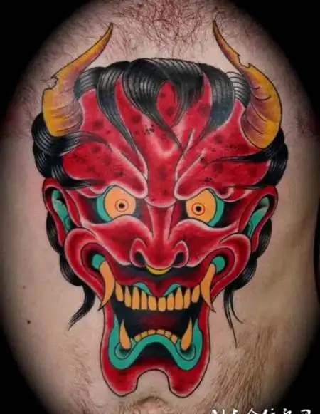 胸前的红色般若的纹身图案