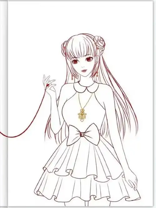 靴子和裙摆涂黑色两人的脸上都涂上粉色脸蛋齐娜和菲灵简笔画就画好
