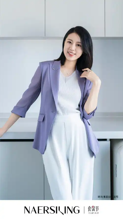 naersiling这款郁金香领绮丽西装,浪漫的紫色,神秘而高贵,搭配白色