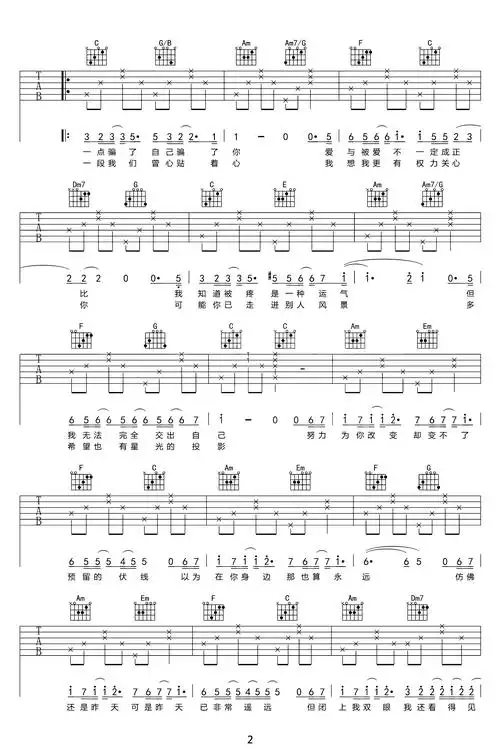 【可惜不是你吉他谱】可惜不是你(c调高清吉他六线谱)吉他谱