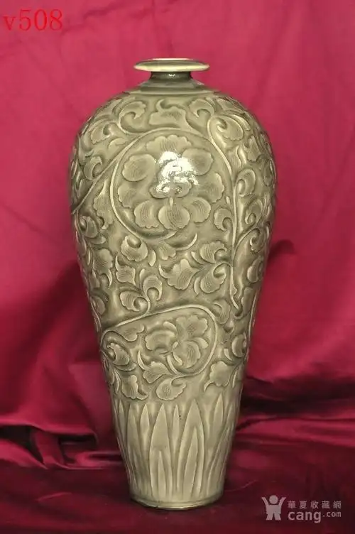2488 宋代 耀州窑青釉刻童子花卉洗口瓶