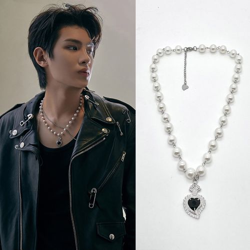 黄明昊同款黑色爱心麻花珍珠项链男女简约气质时尚ins百搭锁骨链