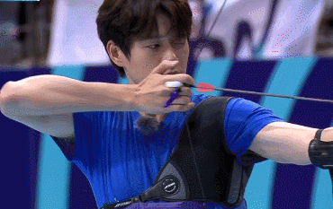 在射箭过程中借位所致——箭的一端芭比粉头儿,在他拉开弓箭