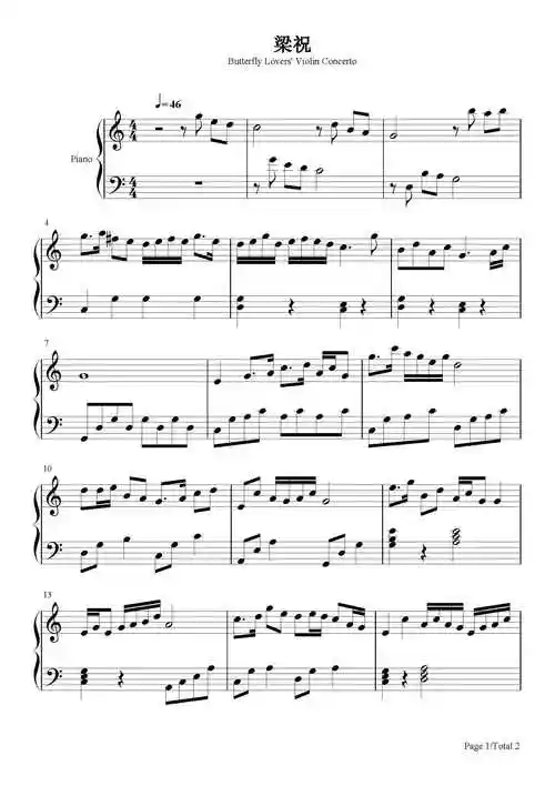 梁祝钢琴谱分享带曲目讲解