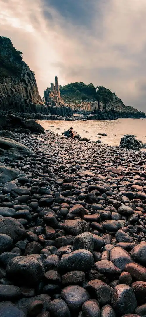石头,海,黄昏,象山,花岙岛,中国 iphone 壁纸