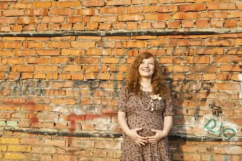 照片 一个长头发的孕妇, 穿着漂亮的长裙坐在椅子上.jpg