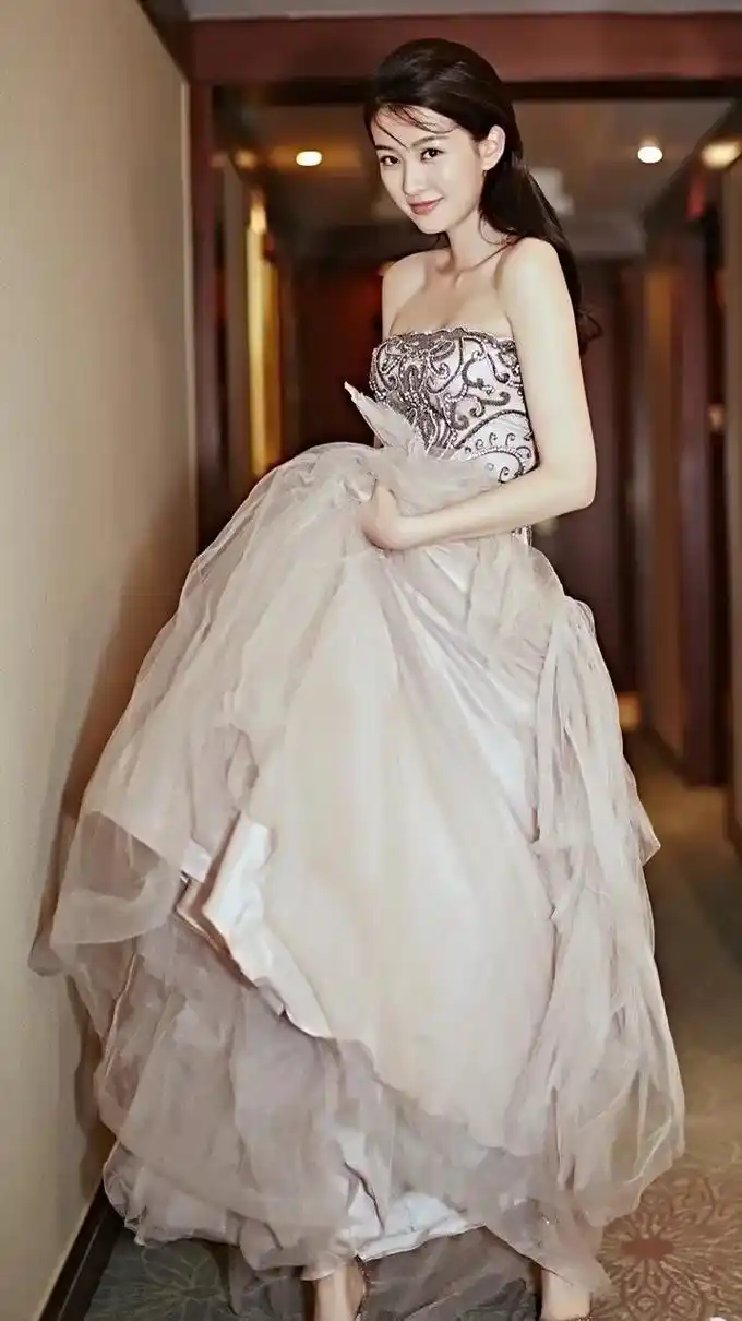 乔欣穿复古红丝绒抹胸长裙写真照曝光