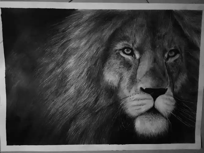黑白狮子铅笔画