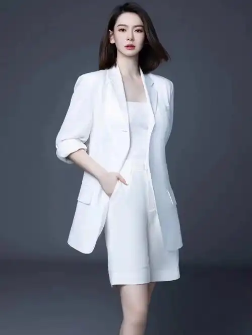 edition品牌大使戚薇 身穿edition夏季月光白立裁西装搭配弹力毛织