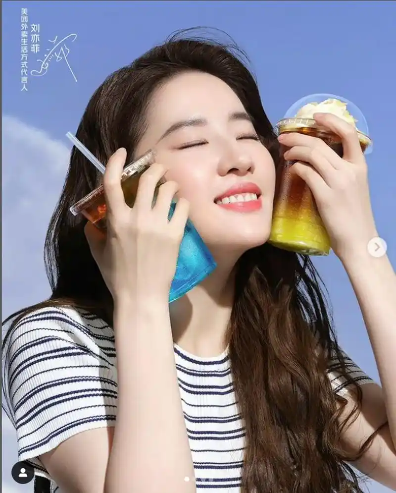 美团外卖官方微博发布了刘亦菲代言的视频和图片,展示了她优雅地享用